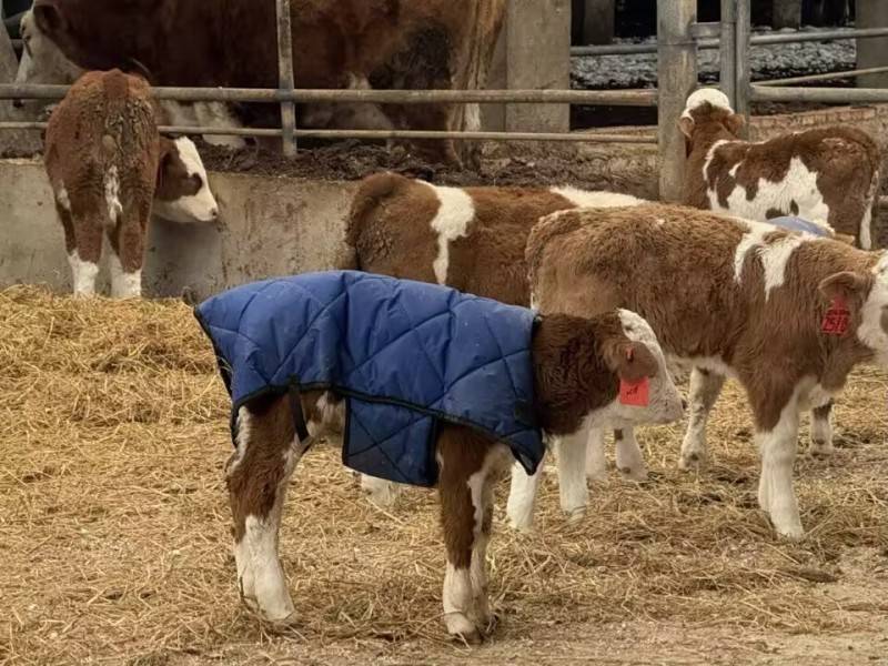 在养殖场内,记者看到,各大型牛舍北侧及通风口均已悬挂厚重防风油布,有效阻隔寒风侵入。犊牛舍更是“防护升级”,刚出生的小牛犊躺在厚实干燥的垫草上,部分还住进了专属保温室,不少犊牛身着量身定制的保暖“马甲”,憨态可掬。据工作人员介绍,犊牛抵抗力较弱,这些保暖措施能极大降低其因低温引发腹泻、肺炎等疾病的风险,保障犊牛存活率。